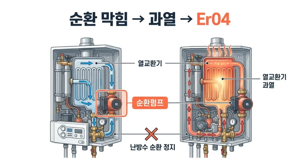 ✅ 순환펌프 막힘·난방 분배기 잠김이 과열의 가장 흔한 원인이에요.