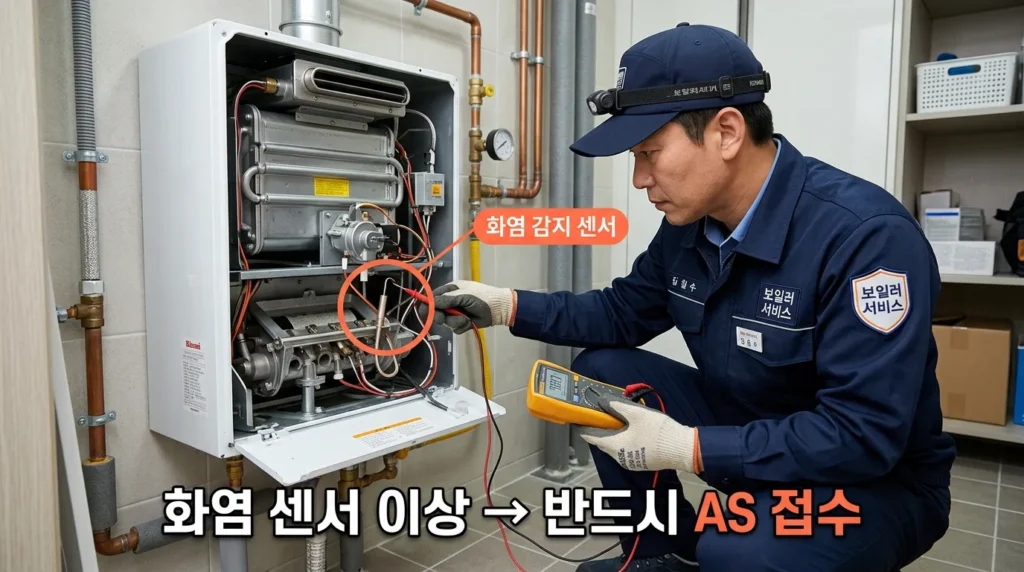 화염 감지 센서(플레임로드)에 그을음이 쌓이거나 센서 자체가 고장나면